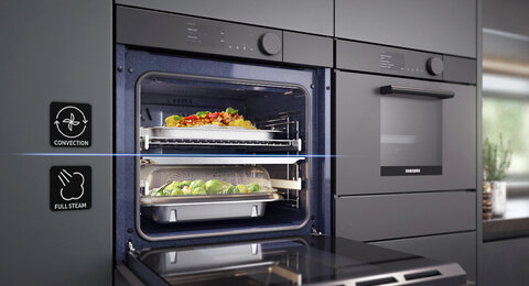 Egal ob zarter Sonntagsbraten oder knusprige Pizza: Mit einem Samsung Backofen gelingt die Zubereitung jedes Mal auf den Punkt. Und mit Backöfen aus dem Dual Cook System bereiten Sie sogar zwei Speisen zur gleichen Zeit zu – bei unterschiedlichen Temperaturen, und ohne dass sich Geruch und Geschmack vermischen. Nutzen Sie die zahlreichen Vorteile des Dual Cook Flex: